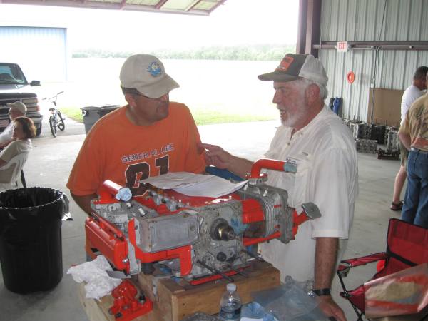 Above, Ray’s engine was about 1/2 complete when he brought it to the College, but we took the time to go over the engine with a fine tooth comb. One of the things we changed was his rear oil case. Ray’s core had come with an oil case from a 1960-61 Corvair. They fit, but they are a heavy sand casting. We replaced it with a die-cast one that had been fitted with one of our high volume pumps. The pump is a good idea with a 5th bearing. Standing with Ray is Dean Smith, long time Corvair movement guy, also from Louisiana.